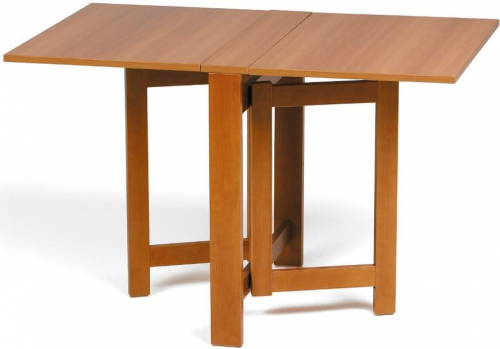 Его можно раскладывать как целиком, так и лишь наполовину, что обеспечивает дополнительное удобство. Каркас выполнен из массива бука, а столешница - из высококачественного ДСП. Практичный и универсальный цвет "вишня" легко впишется почти в любой интерьер.
