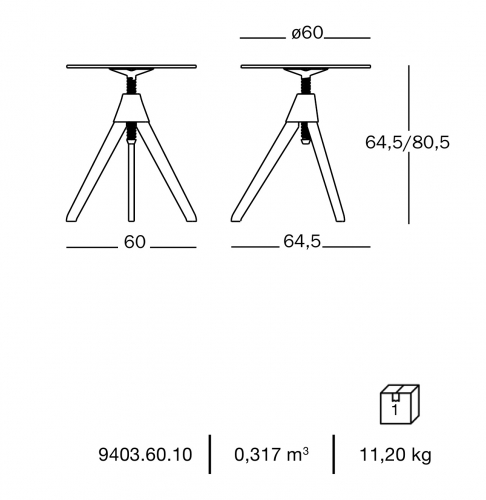 Обеденный стол Topsy был создан как идеальный компаньон для регулируемых табуретов Tom & Jerry и разделяет их вдохновение и материалы: он имеет каркас из массива бука, полипропиленовый винт для регулировки высоты столешницы.