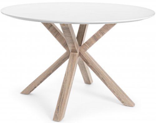 Круглый стол Star Kenya прекрасно подойдет для обстановки стильной столовой или кухни. Разборные ножки выполнены из МДФ, покрытого меламиновой бумагой с отделкой "под дерево", столешница - из матового окрашенного МДФ.