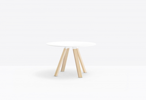 Стол Arki-Table Wood отличается строгой линейной конструкцией, но в то же время он универсален и задуман для использования в самых разных помещениях. Модель с деревянными ножками, образующими в проекции треугольник, и круглой столешницей из компакт-ламината HPL делают изделие долговечным и надежным. Стол отлично впишется в интерьеры коммерческого характера, но также подойдет для обустройства домашних пространств.