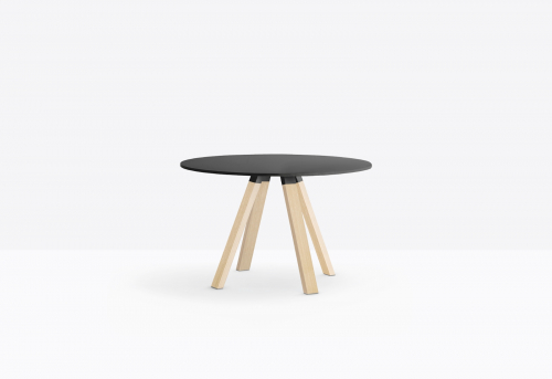 Стол Arki-Table Wood отличается строгой линейной конструкцией, но в то же время он универсален и задуман для использования в самых разных помещениях. Модель с деревянными ножками, образующими в проекции треугольник, и круглой столешницей из компакт-ламината HPL делают изделие долговечным и надежным. Стол отлично впишется в интерьеры коммерческого характера, но также подойдет для обустройства домашних пространств.