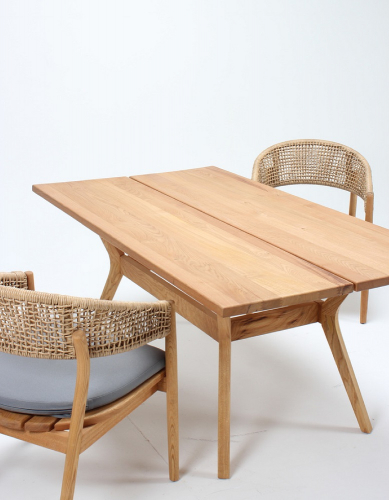 Стол может быть выполнен из дерева ироко или из каштана, идеальных видов древесины для уличных условий. Ироко и каштан обладают высокой устойчивостью к влажности, насекомым и гниению, что делает их отличным выбором для мебели, предназначенной для использования на улице.