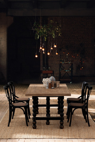 Стол Nereide - это предмет мебели, имеющий привлекательный внешний вид. Красивая античная структура позволит ему сочетаться со многими композициями, выполненными как в светлых, так и в темных тонах. Этот стол выполнит свою функцию на кухне, в столовой и гостиной. Он имеет столешницу из массива ели естественного оттенка. Черные ножки с состаренной отделкой элегантно приподнимают верх, обеспечивая отличную поддержку.