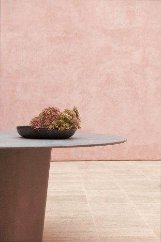 Облегченный бетон представляет собой смесь минеральных гранулятов и органических волокон без смол. В отличие от обычного бетона, он не содержит гравия, что делает его намного легче. Облегченный бетон окрашивается в массе с тонкими вариациями оттенков, уникальными для каждого стола. Каждый предмет мебели обработан вручную итальянским мастером, что придает ему уникальную патину и гладкую текстуру поверхности.