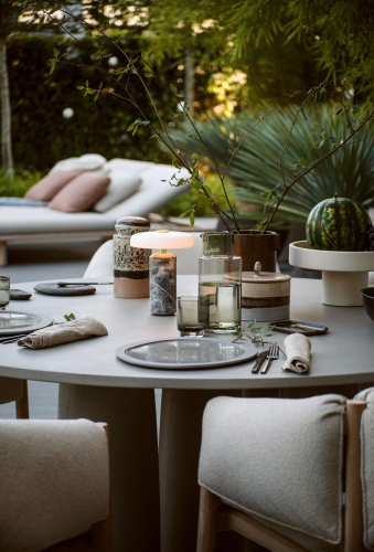 Изначально он был спроектирован исключительно из классического материала, такого как мрамор, однако для более современной версии Kettal использует два других материала - дерево и бетон.
