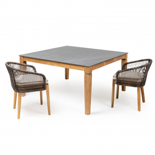 Функциональный обеденный стол Java из тика и керамики, позволяющий разместить большую компанию. Стол представляет собой уникальный предмет мебели ручной работы из настоящего массива тика с полностью натуральной матовой отделкой и неизменным классическим вкусом.