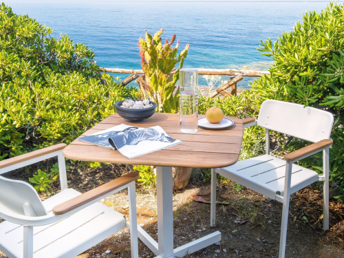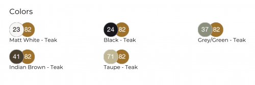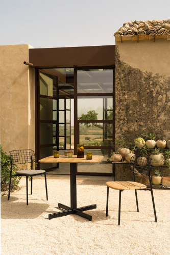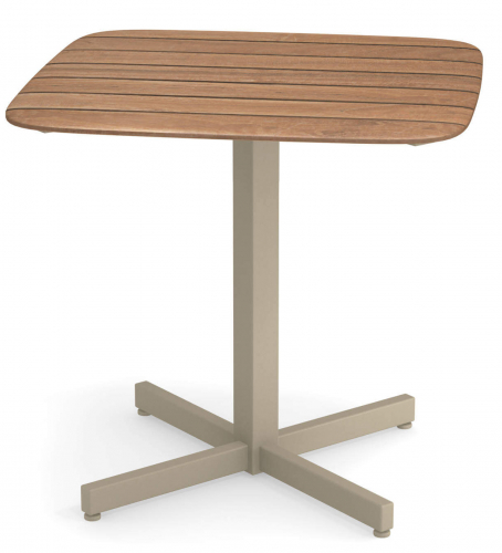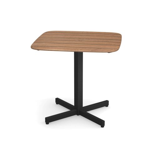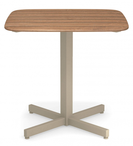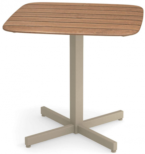 Материал столешницы: тик. Тик - это твердая древесина с высоким содержанием масла, подходящая для наружного использования, без покраски. Если он не имеет никакой защитной обработки, поверхность превратится в серебристо-серый цвет, естественную защиту внутренней части дерева, которая считается неотъемлемой частью очарования тика. Тик, используемый для продуктов EMU, сертифицирован FSC®.