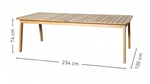 Стол выполнен из массива тика. Тик - это лиственное дерево твердых пород, которое происходит из высокогорья. Никакая другая древесина не обладает такой исключительной прочностью и долговечностью, как тик. Его уникальная текстура и кожистый запах обусловлены высоким содержанием масла. Эти характеристики в сочетании с высокой плотностью древесины предотвращают коробление и гниение, позволяя мебели оставаться на открытом воздухе в любых условиях без ухода или защитных средств. Древесина устойчива к влажности, ультрафиолетовым лучам, холоду и резким перепадам температур. Поэтому это отличный материал для уличного применения. При длительном хранении тиковой мебели на открытом воздухе ее пигментация растворяется, приобретая мягкий серебристо-серый оттенок. Поскольку на начальном этапе это - естественный процесс, серебристо-серый цвет может проявляться неравномерно. Чтобы сохранить первоначальный цветовой тон, фабрика OASIQ рекомендует проводить чистку один или несколько раз в год.