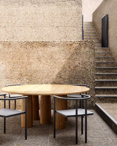 Изначально он был спроектирован исключительно из классического материала, такого как мрамор, однако для более современной версии Kettal использует два других материала - дерево и бетон.