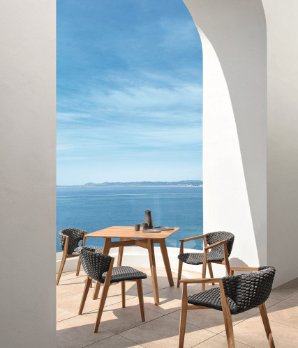 Knit, созданная в 2014 году и расширенная в 2015 году, является звездной коллекцией в широком ассортименте от Ethimo. Полная линейка столов и стульев, изготовленная из тика и искусственного синтетического волокна, отличается изысканностью, для идеального синтеза эстетики, функциональности и эргономики.