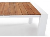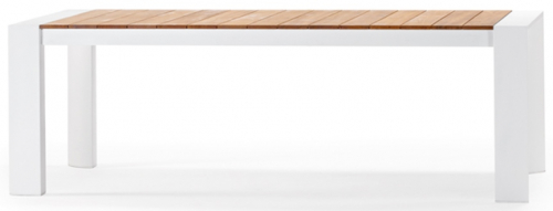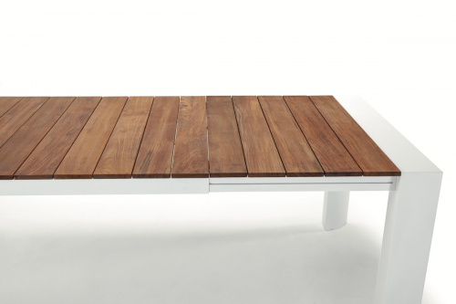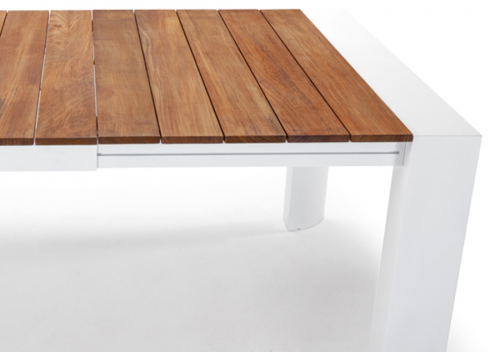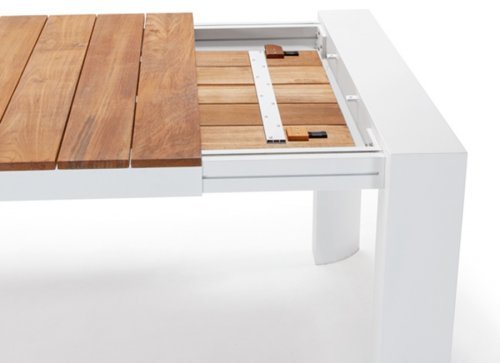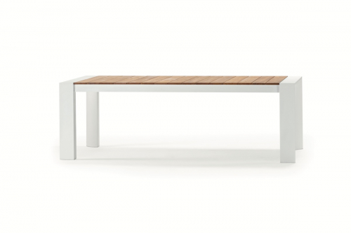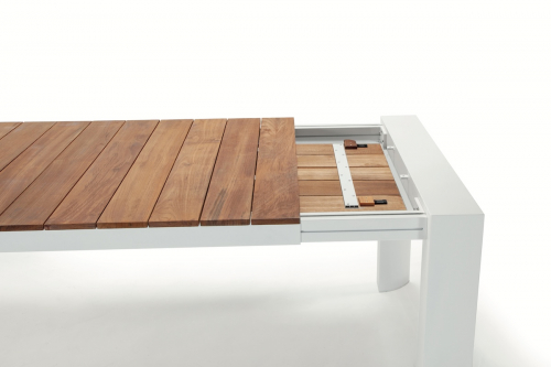 Top - это раздвижной стол с каркасом из алюминия, подходящий как для обстановки интерьеров, так и для садов, бассейнов, больших террас и любых других открытых пространств. Столешница Top выполнена из реек необработанного тика. Тиковая древесина устойчива к влаге и гниению и обладает эффектной фактурой. Прочная, износостойкая столешница прекрасно подойдет для использования в заведениях и на открытых площадках с высокой посещаемостью.