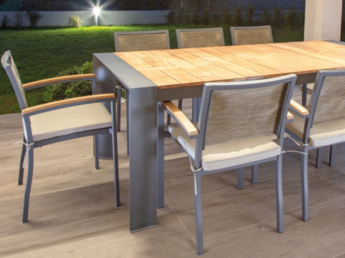 Стол с современным и элегантным стилем особенно подходит для открытых пространств из-за его устойчивости к атмосферным воздействиям, но также часто он используется для обстановки внутренних интерьеров: столовых и гостиных.