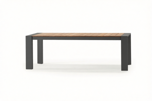 Top - это раздвижной стол с каркасом из алюминия, подходящий как для обстановки интерьеров, так и для садов, бассейнов, больших террас и любых других открытых пространств. Столешница Top выполнена из реек необработанного тика. Тиковая древесина устойчива к влаге и гниению и обладает эффектной фактурой. Прочная, износостойкая столешница прекрасно подойдет для использования в заведениях и на открытых площадках с высокой посещаемостью.