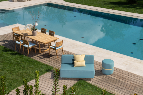 Тик - одна из самых ценных и стойких пород дерева, благодаря своей естественной маслянистости, она обладает способностью обновляться и самосмазываться. С течением времени и сезонов типичный медовый цвет тикового дерева имеет тенденцию становиться серебристым из-за естественного окисления самого внешнего слоя поверхности, подверженного воздействию атмосферных агентов и ультрафиолетовых лучей.