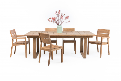 Стол выполнен из массива натурального индонезийское тика с матовой отделкой. Материал только из законных источников и сертифицированных экологически безопасных лесов.