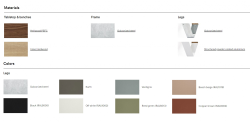 Серия столов Hopper Picnic доступна в нескольких вариантах размеров. Длина столешницы может достигать 1780 мм, 2380 мм, 2980 мм, 3580 мм.