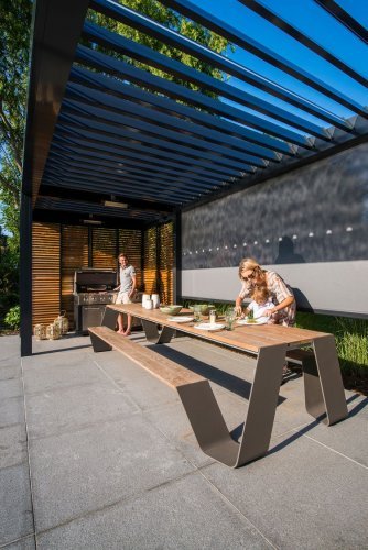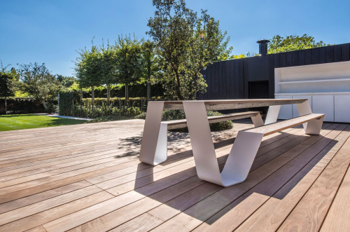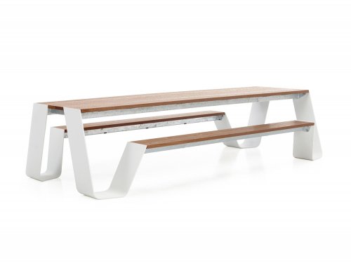 Алюминиевые или стальные ножки в сочетании с твердой древесиной первого класса обеспечивают долговечность материала, а прикрепленные скамейки всегда сохраняют эстетичный вид. Если Вы предпочитаете стол для пикника из мономатериала, вы можете обратить внимание на модель Hopper AA - полностью алюминиевую версию стола со скамейками.