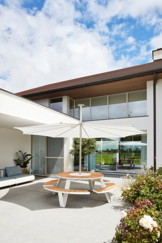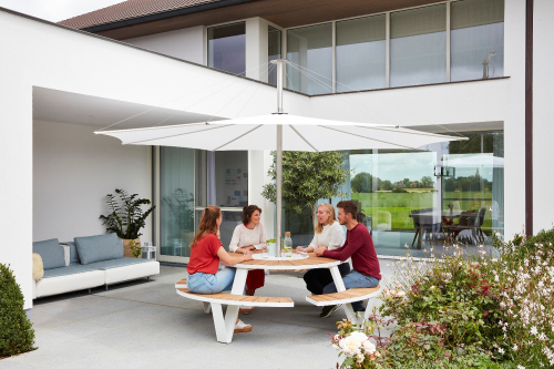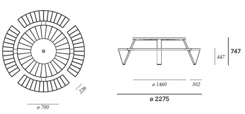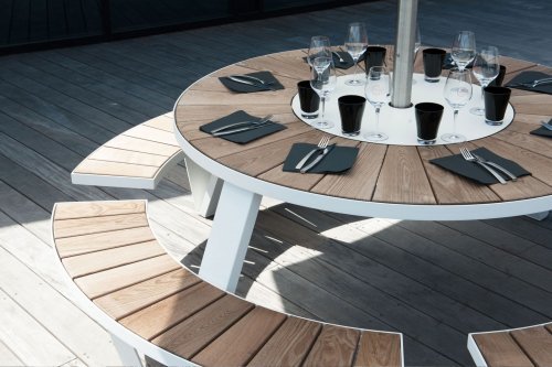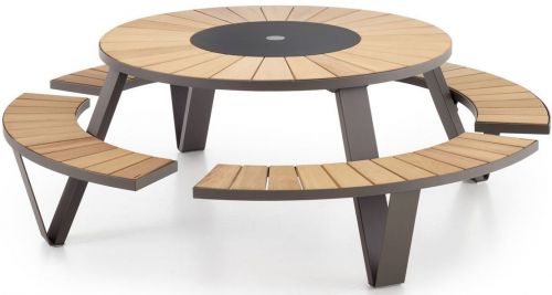 Круглый стол для пикника Pantagruel был удачно назван в честь вымышленного персонажа романа Рабле 16 века, в котором великан Гаргантюа учит своего сына Пантагрюэля наслаждаться жизнью в полной мере. Стол имеет поразительные сходства со столом Gargantua, но есть и некоторые различия, например, в их особенностях и создаваемой атмосфере. Круглая столешница Pantagruel оснащена центральным вращающимся подносом Lazy Susan. Сиденья не регулируются по высоте, как в случае с Gargantua. Общее впечатление остается прежним. Узнаваемо прочный, но внешний вид немного более элегантный - это делает Pantagruel популярным среди поклонников более изысканной эстетики.
