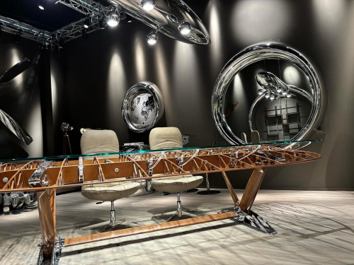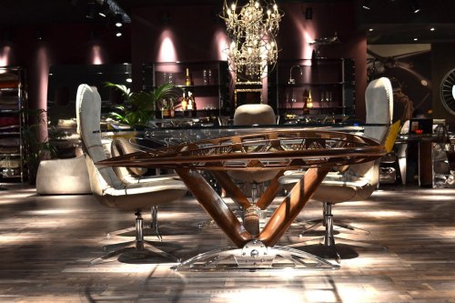 Стол Aeronautica AIR-TAV0102 - это уникальный предмет интерьера, созданный из каркаса верхнего крыла легендарного самолета Boeing Stearman. Стол, который можно использовать в качестве обеденного или конференционного, воплощает в себе дух авиационной истории, объединяя аутентичные элементы самолёта с современным дизайном. Массивная столешница подчёркивает индустриальный стиль, а прочные металлические элементы обеспечивают надёжность и долговечность. Стол станет не просто функциональной частью вашего интерьера, но и ярким акцентом, привлекающим внимание и вызывающим восхищение своим уникальным происхождением и мастерским исполнением.