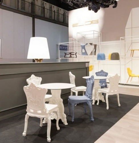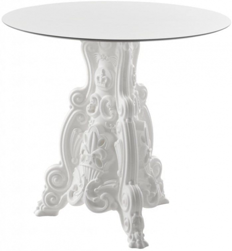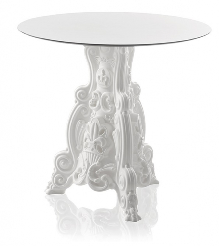 Lord of Love - стол, напоминающий итальянский стиль барокко, богатый деталями. Стол элегантный благодаря сочетанию различных материалов: основание из полиэтилена, которое напоминает попсовый, винтажный и ироничный стиль всей коллекции Design Of Love, в то время как белая столешница выполнена из HPL, что придает нотку изысканности Lord of Love. Это стол, идеально подходящий для оригинальных проектов Contract и незабываемых событий, потому что стол современный, красочный и элегантный одновременно, и он идеально подходит для внутренних и наружных условий. Он доступен также в светящейся версии.