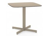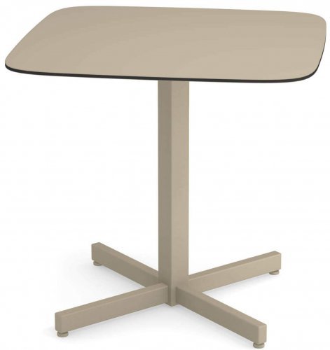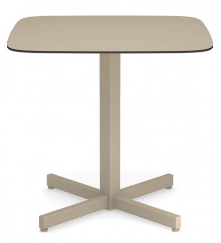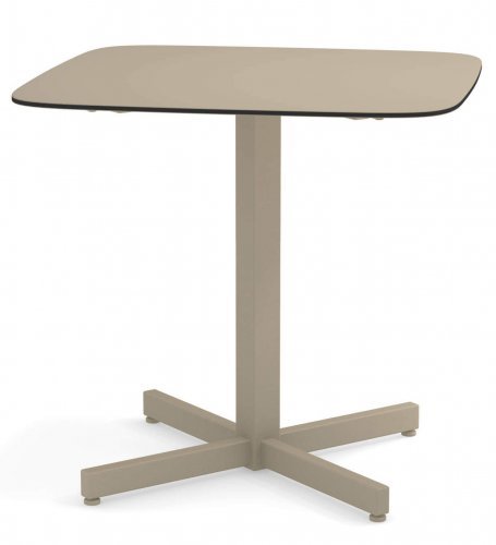 Материал столешницы: HPL - материал, подходящий для наружного использования. Он состоит из слоев крафт-бумаги, пропитанных фенольными смолами, и декоративного поверхностного слоя, пропитанного термореактивными смолами. Эти слои прессуются при 9 Мп и при температуре 150 градусов по Цельсию.