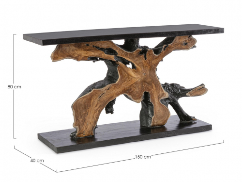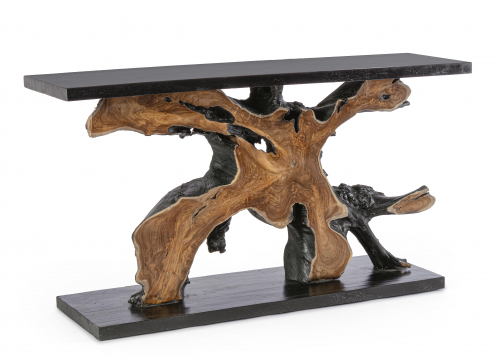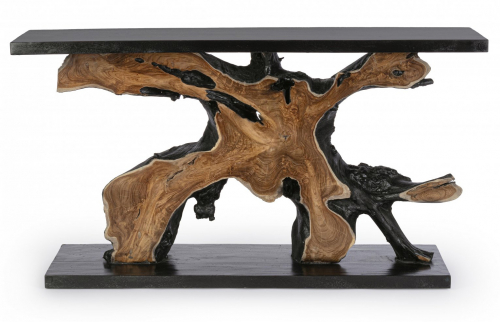 Консольный стол Marwood - это чудо, созданное природой. Между листами дерева суар декорированы чудесные корни тикового дерева. С помощью этого изделия частичка природы переедет в ваш дом. Этот эффектный и поистине уникальный консольный столик станет отличным выбором для любого интерьера. Каждое изделие уникально и изготовлено вручную, поэтому не существует двух одинаковых предметов.