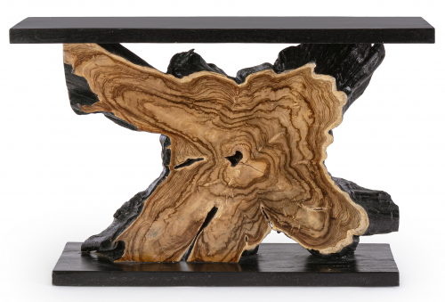 Консольный стол Marwood - это чудо, созданное природой. Между листами дерева суар декорированы чудесные корни тикового дерева. С помощью этого изделия частичка природы переедет в ваш дом. Этот эффектный и поистине уникальный консольный столик станет отличным выбором для любого интерьера. Каждое изделие уникально и изготовлено вручную, поэтому не существует двух одинаковых предметов.