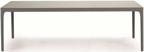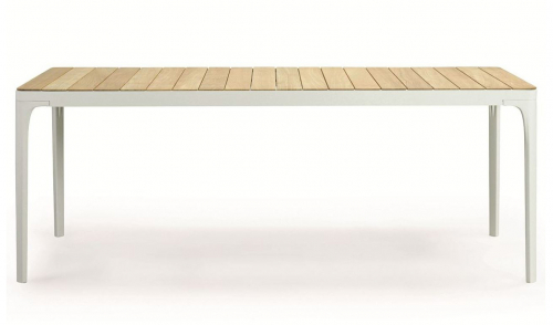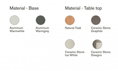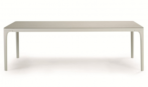 Столы Play дают возможность играть с размерами и разнообразием материалов, из которых выполнена столешница: окрашенный алюминий, натуральный тик, керамогранит с эффектом "под камень" или со специальной фактурной отделкой.
