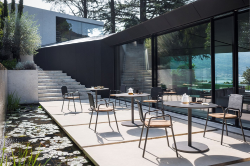 Button - это коллекция столов для бистро с круглой или квадратной столешницей, представленной в разных размерах. Стол Button способен со вкусом обставить небольшой городской балкон, а также большую террасу ресторана. Функциональность, практичность и надежность стола-бистро Button 004 подчеркивается алюминием, который в свою очередь отличается простотой и элегантностью.