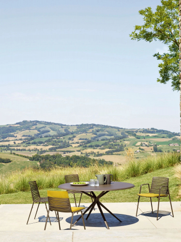 Универсальность является отличительной чертой обеденного стола Moai. Стильный и изящный дизайн модели черпает вдохновение в своеобразных формах сосны. Элегантный каркас выполнен из надежного алюминия, предназначенного для круглогодичного использования на открытом воздухе. Множество ножек похожи на прочные корни деревьев. Стол идеально подходит для применения в сфере Contract, но также подойдет для частных интерьеров и экстерьеров.