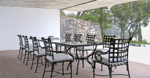 Коллекция Kross фабрики Sifas - утонченное сочетание традиций и современности, обладающая щедрыми формами и обрамлённая кованными вихрями и бесконечными линиями. Вместе с роскошью она привносит невероятное удобство в каждый предмет интерьера от столика до дивана. Под "кованым железом" скрывается высокотехнологичный алюминий, который придает изделиям прочность и легкость. Столешница выполнена из обрамленного кованым алюминием литого стекла, созданного по специальной технологии, благодаря которой оно получило свой аутентичный внешний вид и повышенную прочность. Коллекция Kross обладает особым очарованием и стилем, поэтому прекрасно впишется в интерьер провансальского фермерского дома, окруженного лавандовыми полями, так и в интерьер современной виллы. Большой удобный обеденный стол Kross создан, чтобы разделить приятные моменты с друзьями и близкими с абсолютным комфортом. Столы представлены в трех размерах.