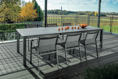 Panarea - это раздвижной стол из алюминия, подходящий как для обстановки интерьеров, так и для садов, бассейнов, больших террас и любых других открытых пространств. Его каркас выполнен из алюминия, а верх - из листа алюминия толщиной 5 мм.
