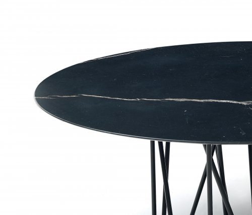 Форма основания стола Octopus вдохновлена морскими существами, статными и извилистыми, с щупальцами, поддерживающими столешницу. Кажется, это импровизированный стол с легким и минималистичным внешним видом, где тонкие подставки, очевидно расположенные небрежно, противопоставляются строгости круглой столешницы. Это стол из сплетенных схем, который можно разместить в любом интерьере, как элемент, который можно комбинировать с другими предметами классического дизайна.