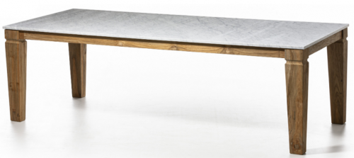 Jeko 34 – обеденный стол в колониальном стиле, изготовленный из двух потрясающих материалов: каррарского мрамора, столетиями используемого в элитной отделке, и ЭКОТика, имеет простой и элегантный дизайн. Использование столь разных материалов сделало стол Jeko 34 уникальным, подарив ему особенный характер и внешний вид. Белоснежный каррарский мрамор прекрасно контрастирует с отполированным вручную тропическим тиком: гармония природных фактур Jeko идеально впишется в интерьер загородного дома, в котором ценятся свежие дизайнерские решения.