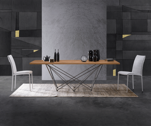 Стол Net был сделан во имя абсолютной современности: его основание образовано геометрическим переплетением лакированных металлических стержней. Столешница может быть выполнена из массива дуба (толщиной 32 мм) или из шпона (толщиной 25 мм). Net идеально подходит как в качестве стильного учебного стола, так и в качестве элегантного обеденного стола. Стол радует высоким качеством и может стать украшением любого интерьера.