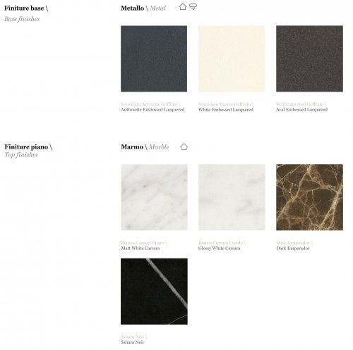 Цена на сайте указана за модель с основанием антрацит и столешницей из мрамора Dark Emperador. Цены на другие модели уточняйте у менеджеров.