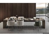 Linha, что по-португальски означает "линия", - это его ответ на задачу разработать обеденный стол с большим размахом, конструкцией толщиной всего 16 мм и столешницей, которая может достигать 4 метров в длину. Визуально он кажется чрезвычайно легким и воздушным, несмотря на сильное воздействие используемых материалов, в которых мрамор смело занимает центральное место.