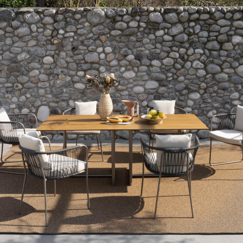 Новая коллекция Levante привносит очарование в сочетание и наложение различных материалов - металлической конструкции, ткани и роупа - с международным дизайном, но итальянской душой. Насыщенное поэтическое повествование о восходящем солнце, по сути, лежит в основе коллекции. Мастерство ремесленников и неповторимый стиль Rever придают каждому предмету уличной мебели Levante сущность современного дизайна. Стол Levante - это свидетельство хорошего вкуса и праздничности, который задуман с учетом личного вкуса и индивидуальных потребностей. Идеально подойдет для обустройства обеденной зоны на терассе загородного дома или отеля.