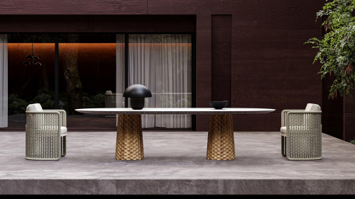 Коллекция Miura для отдыха на открытом воздухе - это приглашение к комфорту и элегантности. Мягкие, объемные сиденья привлекают внимание своей плетеной оболочкой, отличительной чертой, достигнутой за счет использования акриловых шнуров разного диаметра. Это плетение не только придает уникальный внешний вид, но и добавляет привлекательные тактильные ощущения. Miura предлагает широкий ассортимент элементов для уличной среды, гарантируя решения для различных потребностей. От предметов мебели для отдыха, которые приглашают расслабиться и комфортно провести время, до обеденных наборов, которые сочетают стиль и функциональность для дружеских встреч, вплоть до шезлонгов, каждый элемент разработан, чтобы придать характер окружающей среде.