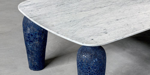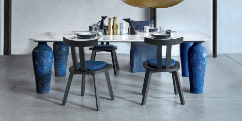 Создателем коллекции стала итальянский дизайнер Paola Navone. Mone 33 - это стол, доступный с литым алюминиевым или мраморной столешницей и керамическим основанием синего цвета.