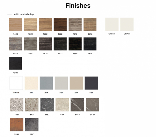 Цена на сайте указана за модель с отделкой каркаса BE100E и столешницей в отделке 3447. Для уточнения всех возможных вариантов материала и цвета данного изделия обращайтесь к нашим менеджерам.