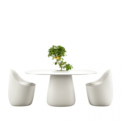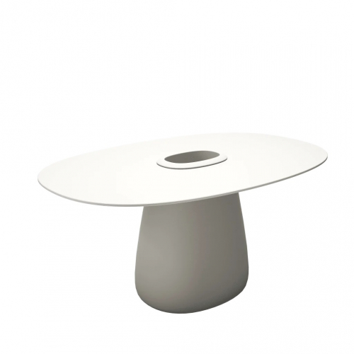 Cobble - это яркий предмет мебели, разработанный знаменитой Элизой Джованнони. Это потрясающий стол с центральным основанием и контейнером в центре столешницы, который можно использовать как кашпо для растений или емкость для охлаждения напитков. Тонкая столешница изготовлена из компакт-ламината HPL - материала, пригодного для использования на открытом воздухе или в помещении.