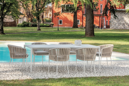 Bahamas - это обеденный стол из алюминия, подходящий как для обстановки интерьеров, так и для садов, бассейнов, больших террас и любых других открытых пространств. Стол с современным и элегантным стилем особенно подходит для открытых пространств из-за его устойчивости к атмосферным воздействиям, но также часто он используется для обстановки внутренних интерьеров: столовых и гостиных.