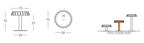 Fizzz - это стол, столешница которого напоминает крышку бутылки и поддерживается основанием различной высоты (в кофейной, обеденной и барной версиях). Невероятная способность дизайнера Gianni Arnaudo создавать элегантные изделия опирается на формы предметов, используемых в обычной жизни и далеко от мира дизайна.