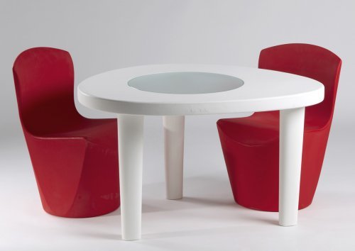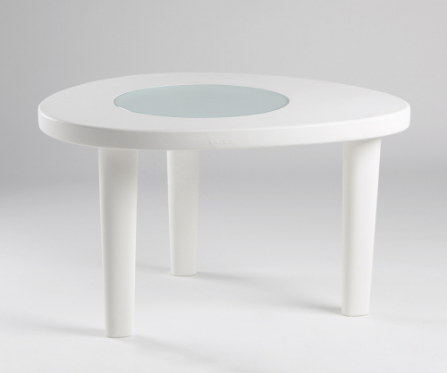 Coccode - это уютный современный обеденный стол из полиэтилена на 3 ножках, который имеет простой и линейный дизайн, идеально подходящий для любого типа пространства в помещении и на открытом воздухе. Благодаря вставке из закаленного стекла, иронично воссоздающей форму яйца, Coccode идеально подходит как для домашнего интерьера, так и для офиса.