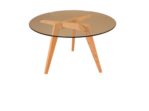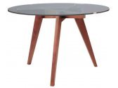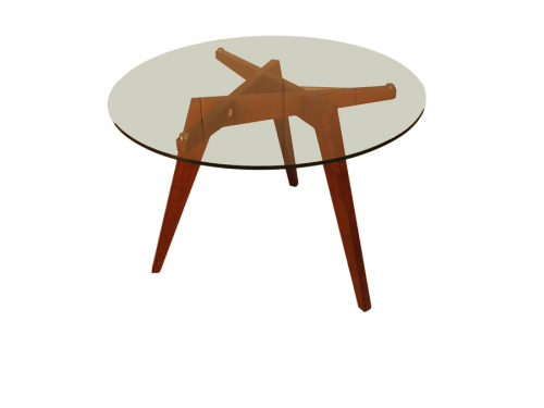 Boomerang - это элегантный круглый стол на трех ножках, каждая из которых отличается формой бумеранга, и вместо они образуют композицию, напоминающую хвосты ласточек, и видимую сидящим из-под прозрачной стеклянной столешницы.