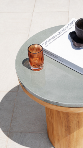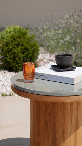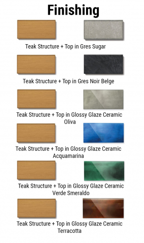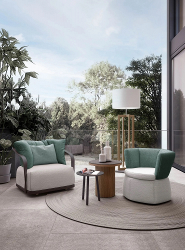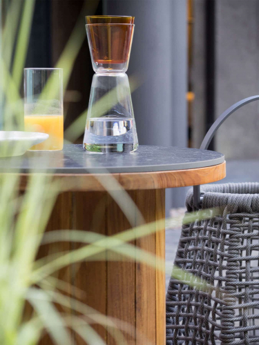 Мебель Atmosphera выполнена из тика, который выращивают на экологически устойчивых индонезийских плантациях. Богатое таниновым маслом, оно обеспечивает отличную стойкость даже в экстремальных условиях. Древесина устойчива к влажности, ультрафиолетовым лучам, холоду и резким перепадам температур. Поэтому это отличный материал для уличного применения. При длительном хранении тиковой мебели на открытом воздухе ее пигментация растворяется, приобретая мягкий серебристо-серый оттенок. Поскольку на начальном этапе это естественный процесс, серебристо-серый цвет может проявляться неравномерно. Чтобы сохранить первоначальный цветовой тон, фабрика предлагает специальный набор по уходу для использования один или несколько раз в год. Прочный керамогранит, используемый для столешницы, получается путем высокотемпературного прессования чистых материалов, имеет полуглянцевый натуральный внешний вид.