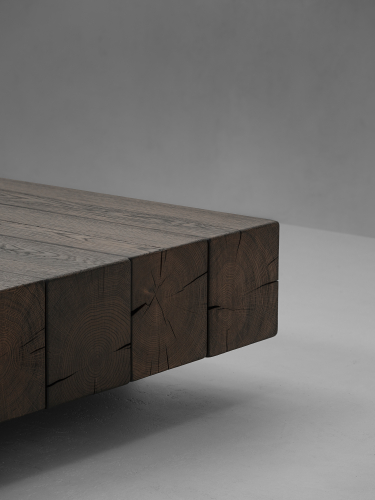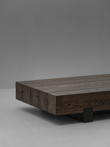 Низкий прямоугольный журнальный столик Beam из массива дуба Van Rossum на металлическом основании невероятно прочен и вместителен. Поверхность столешницы с богатыми торцевыми краями манит и притягивает, к ней хочется прикоснуться, ее хочется рассматривать и любоваться. Деревянные балки имеют рисунок натурального дерева, что делает его синонимом самого леса.