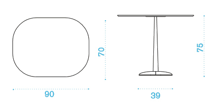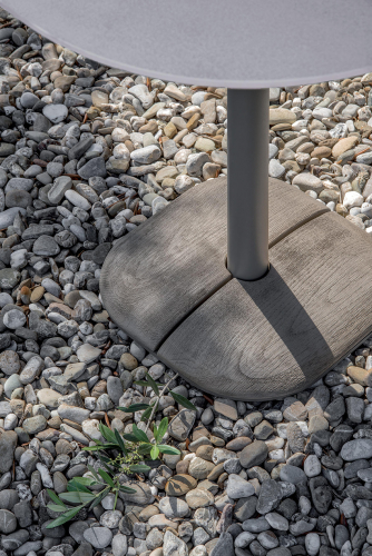 Металлическая коническая конструкция, которая поддерживает столешницу, опирается на основание, которое может быть закрыто крышкой из натурального или мореноготика.
