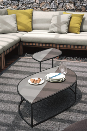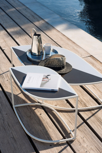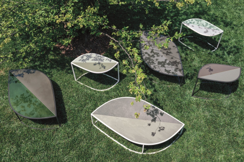 Leaf - это коллекция уличных кофейных столиков разных размеров, дополняющих друг друга и напоминающих листья, которые падают с деревьев и становятся прекрасными аксессуарами к садовой мебели. Столики можно комбинировать, создавая гармоничную игру столешниц двух высот и разных оттенков для "естественного вдохновения". Разнообразие цветов, доступных для столешниц из керамогранита, матового или глазурованного, позволяет использовать множество различных комбинаций, которые бросают вызов палитре тканей и отделок, предлагаемой RODA для наружного дизайна.